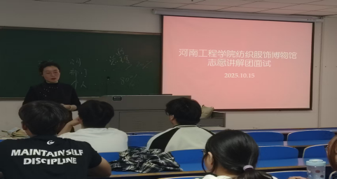 10月15日,河南工程学院纺织服饰博物馆在南区九号楼面向全校学生开展了“博物馆讲解团”招新活动。本次活动由博物馆负责人常卓与管理员董凌燕共同组织。