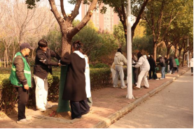 活动现场,师生们热情高涨、分工明确。有的负责搬运草绳、塑料膜等保温材料,有的仔细清理树木根部的落叶杂物,有的按照指导认真缠绕保温层,从树干基部到分枝处,层层缠绕、紧密贴合,确保不留缝隙。大家相互协作、默契配合,不放过每一个细节,力求为树木提供最有效的防寒保护。经过数小时的辛勤忙碌,励行路附近行道树、景观树均已整齐穿上“保暖衣”,在寒风中稳稳伫立,不仅有效增强了树木的抗寒能力,减少低温冻害对树木的损伤,也为冬日校园增添了一道整齐美观的风景线。